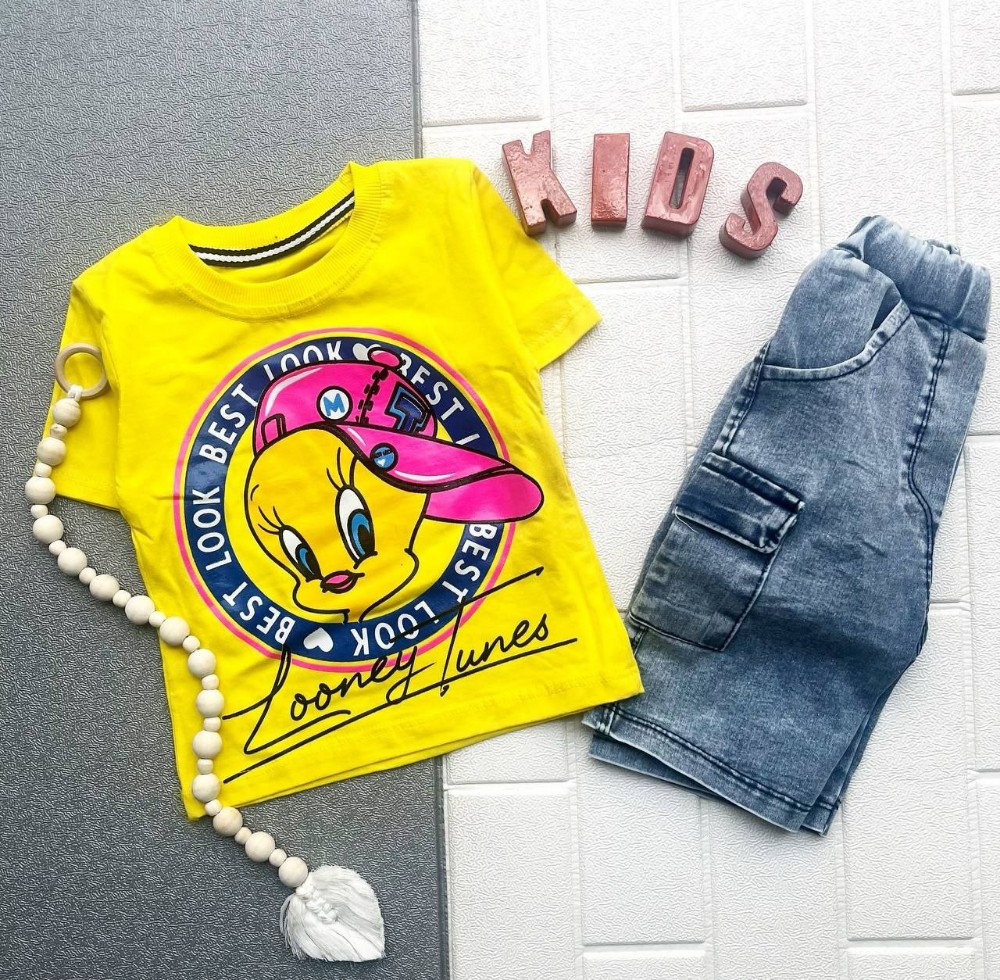 فروش عمده ست تیشرت شلوارک لی دخترانه - ست تیشرت شلوارک دخترانه عمده