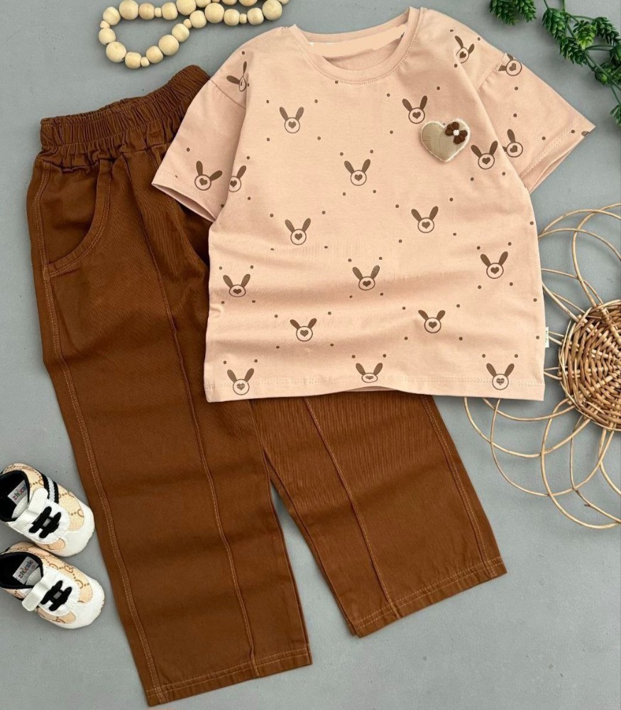 فروش عمده ست تیشرت شلوار دخترانه چاپ خرگوش – ست تیشرت شلوار دخترانه عمده